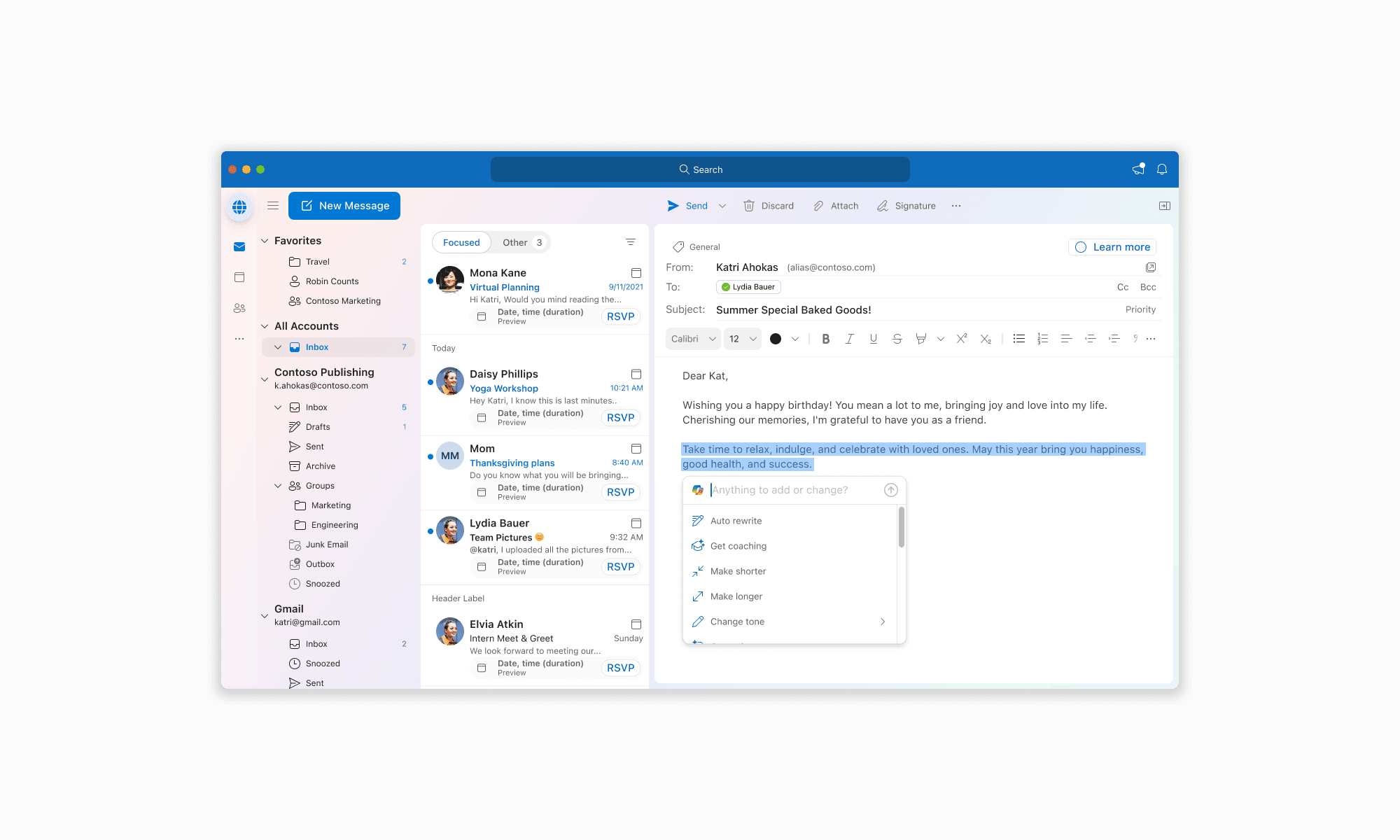 In 2024 I led the drafting team in Outlook to help develop our new drafting experience using Copilot. We wanted the result to feel seamless and effortless; presenting options along the way so that users felt comfortable understanding the capabilities of this new technology.