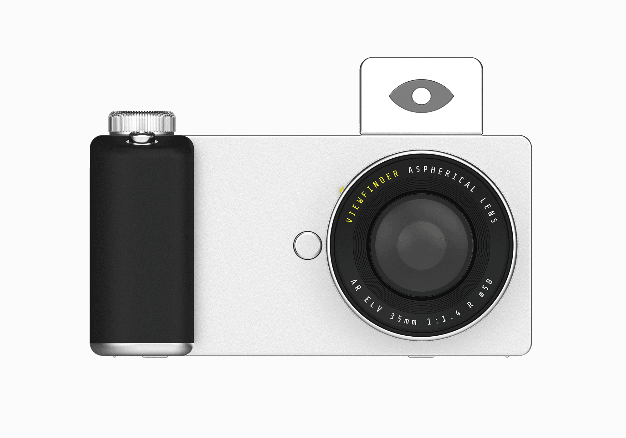 For the hardware, I tried to create a form that was clean and absolved of unnecessary elements. Using consistent values for radii, and central alignment of elements wherever possible. The large grip affords a confident hold. And markings around the camera communicate functionality while tie-ing in fonts between the software and hardware.