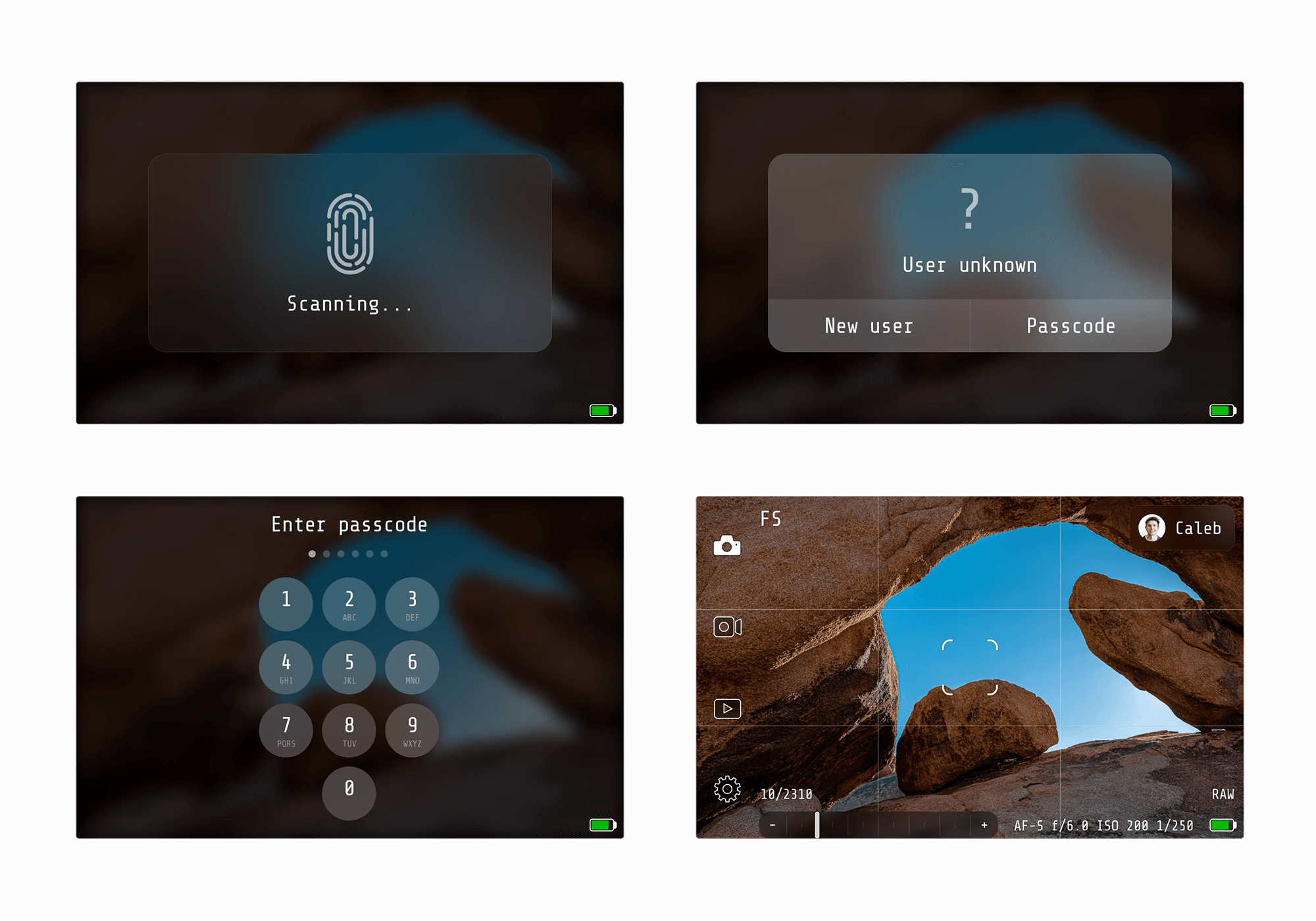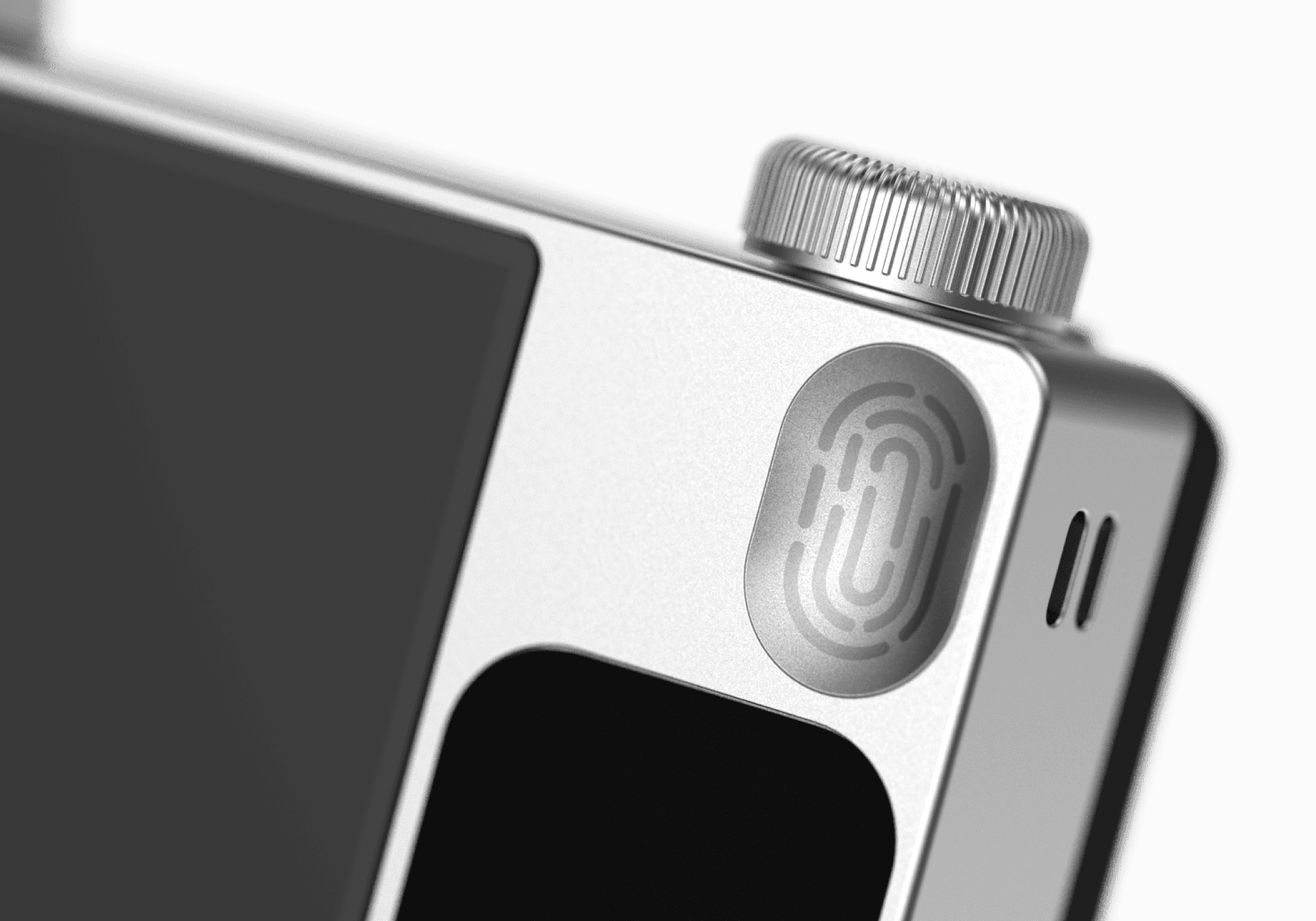 The fingerprint scanner would allow users to automatically be recognized when holding the camera, and also support a layer of encryption whereby the photo-takers own unique imprint is layered as a meta-data level within the photo's that it takes. This would support a system of better photographic ownership to be established, especially relevant in todays world of AI generated imagery.