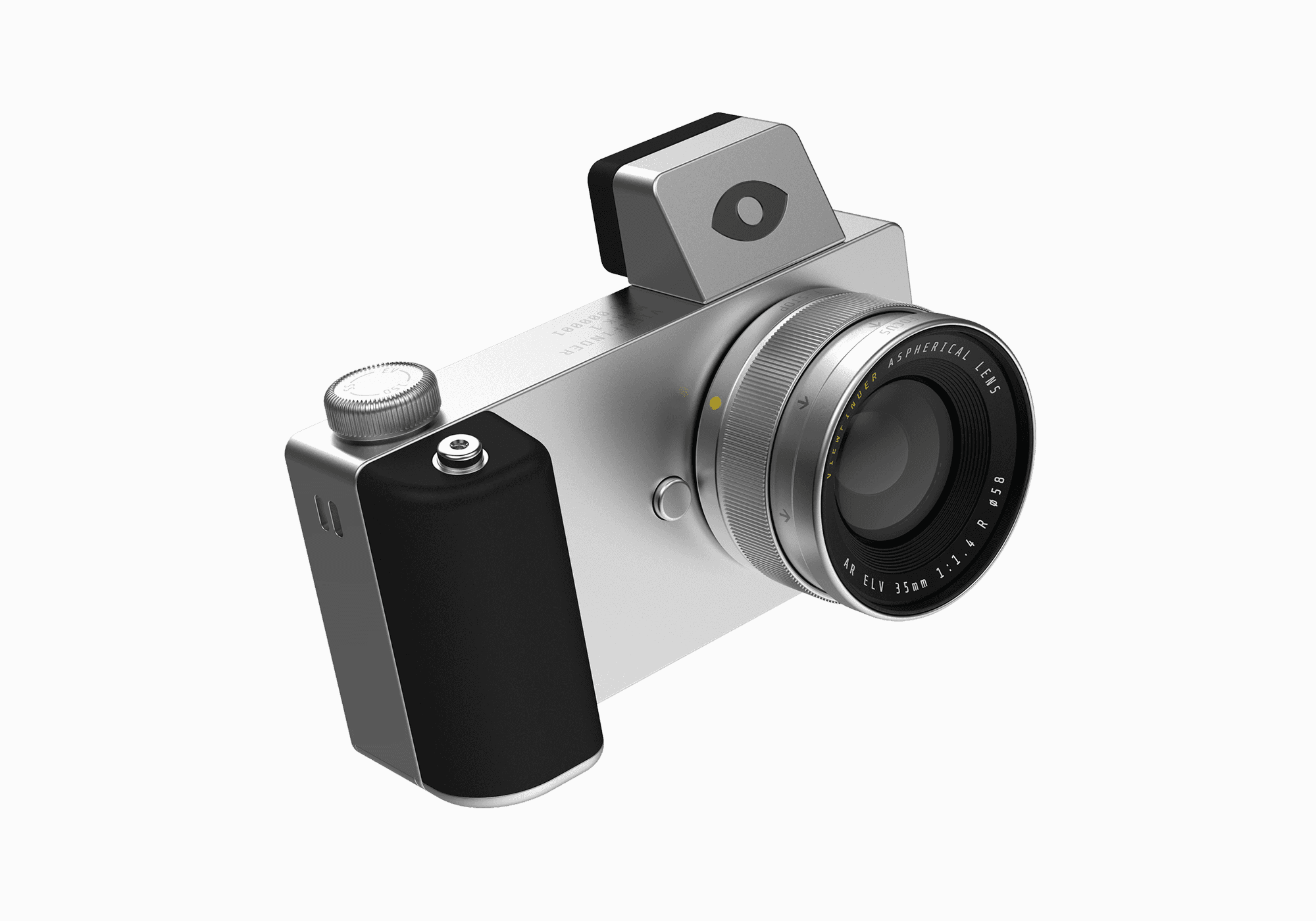 A unique feature of this concept is the control dial. Cameras today have multiple dials for separate functions, like for controlling the ISO, or Shutter Speed, or the Exposure compensation values. The problem with this approach is as you're taking a photo you need to be constantly playing with each of these dials, requiring a user to remember locations while positioning a shot. Viewfinder takes a simpler approach, with one dial that can toggle between each of these functions with a push.